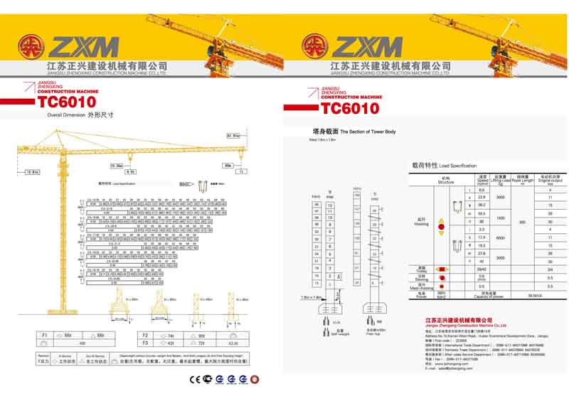 2、最大工作幅度60米,最大起重量6噸,額定起重力矩800KN.M;